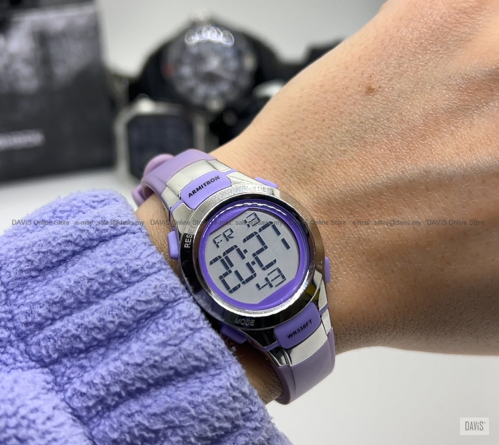 Product Details: Statement making in a small package, this petite digital chronograph resin strap watch will have you ready to go. Band Color: Lavender Warranty: