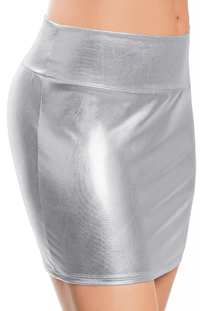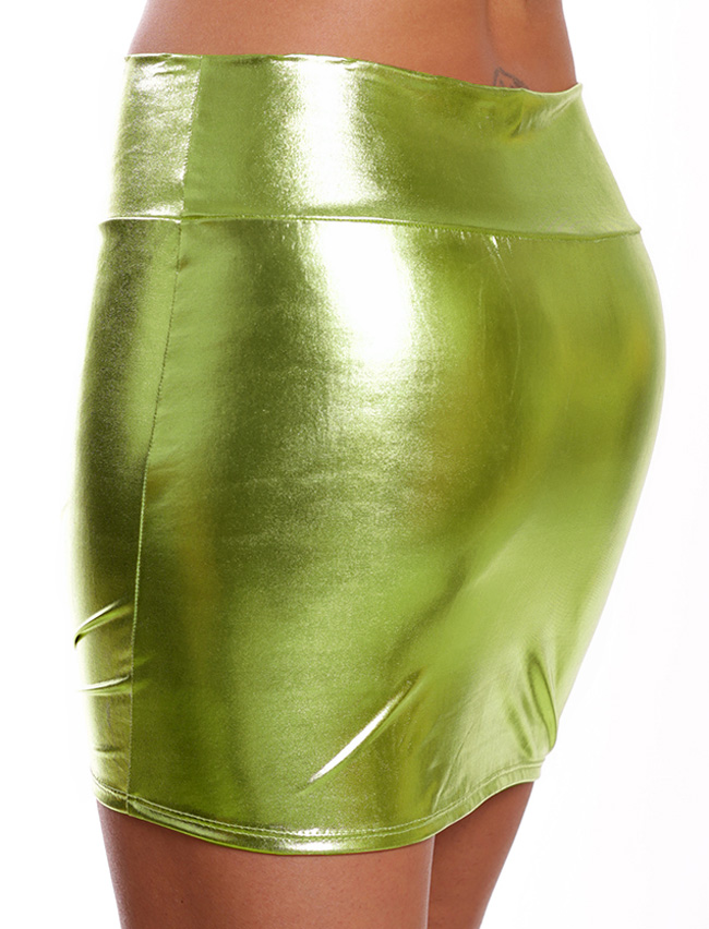 Bandage Tight Slender Latex Pencil Skirt,Metallic Glow,Bodycon Glamour