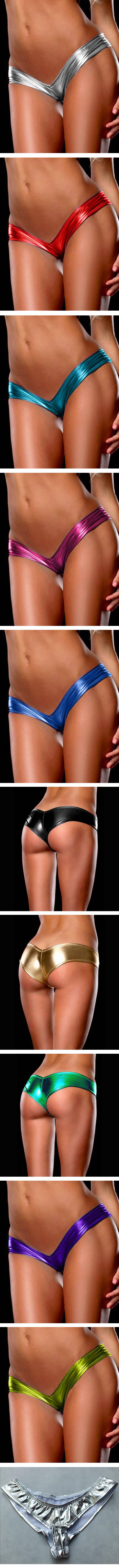 Women's Sexy Metallic Wetlook Low Rise Hipster Brief Shiny Booty Shorts