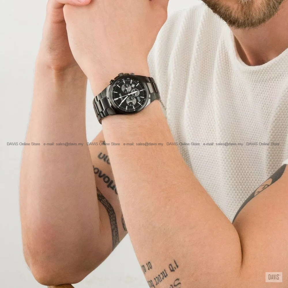 Bold in design and performance, this watch takes stylish precision to a new level. With sleek lines and the deep obsidian tones of the bezel, case, band and face offset by crisp white accents, it presents a sophisticated aesthetic that looks as smooth with jeans as it does a suit. Equipped with quartz mechanism, a meticulously designed chronograph precise to within a second per hour, WR100/10bar and solid 2 year battery life, it is confidently reliable when seconds matter. Details Collection Case Material Dial Colour Crystal Case Size (mm) Band Water Resistance Functions Last Updated @ 12/2/2026 2:51:02 PM |