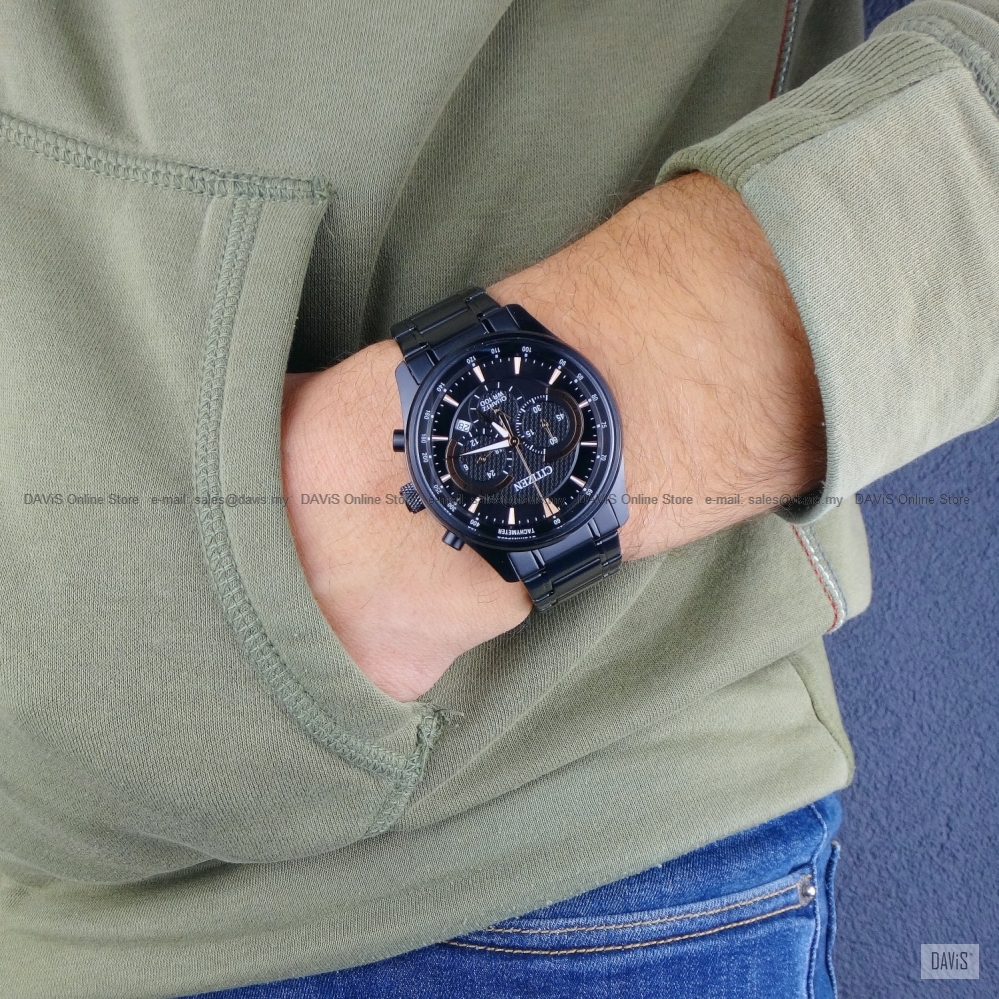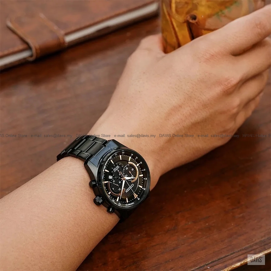 Outfitted with chronograph precise to within a second throughout a 60 minute period, tachymeter for next level accuracy and a reliable Quartz movement mechanism, this is a watch that works as hard as you do. For enhanced performance it offers a 2 year battery life, uncomplicated markings, date display and 12 and 24 hour time dials. Crafted from rugged stainless steel and black ion plating that imbues the watch with seductive black on black tones and a sophisticated aesthetic, it is the ideal watch for the office or hitting the town with friends. Details Collection Case Material Dial Colour Crystal Case Size (mm) Band Water Resistance Functions Last Updated @ 12/2/2026 2:58:34 PM |