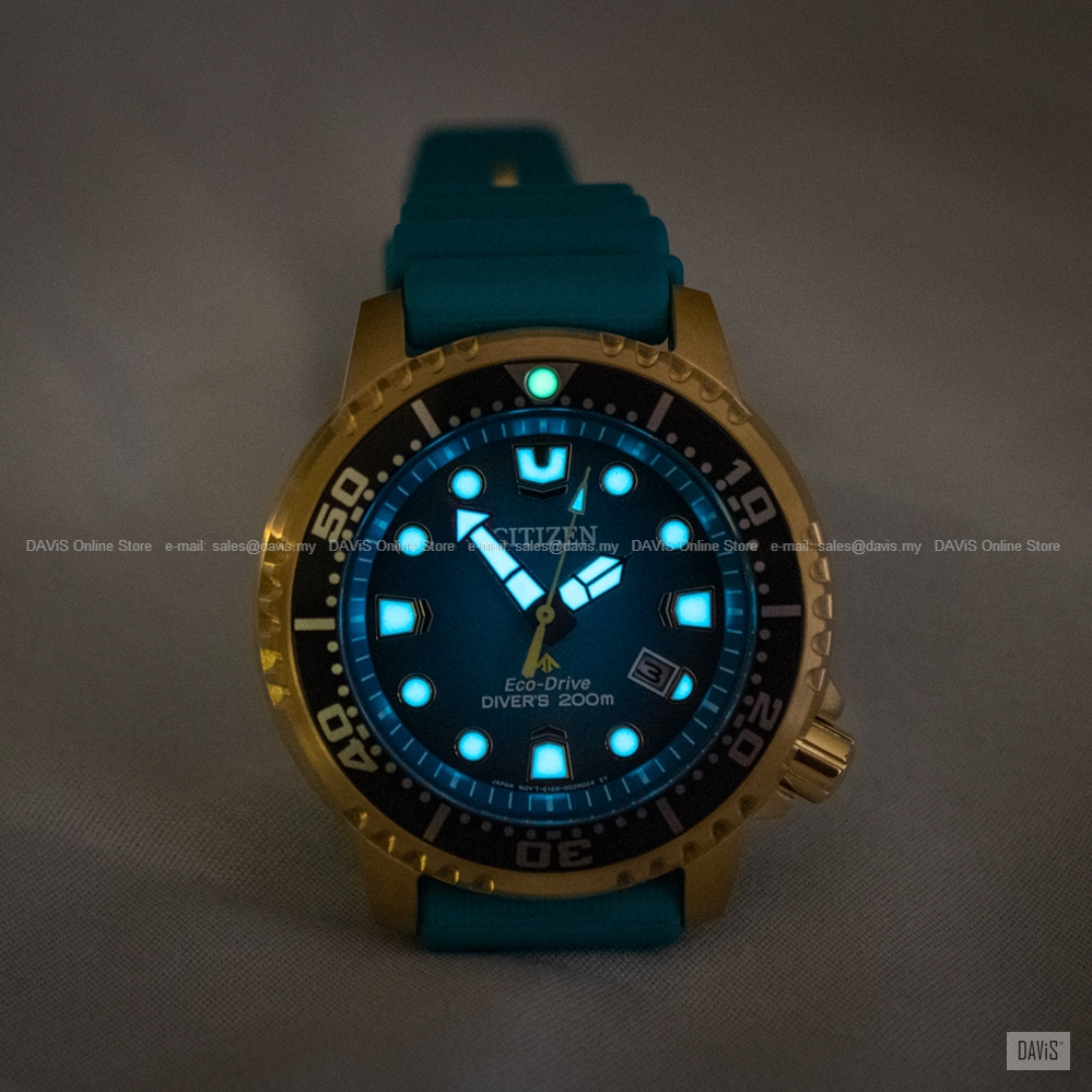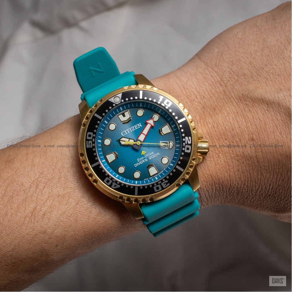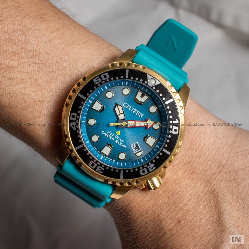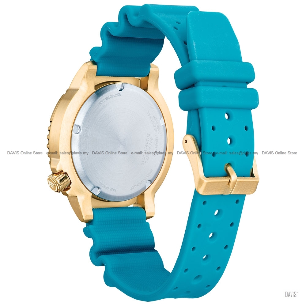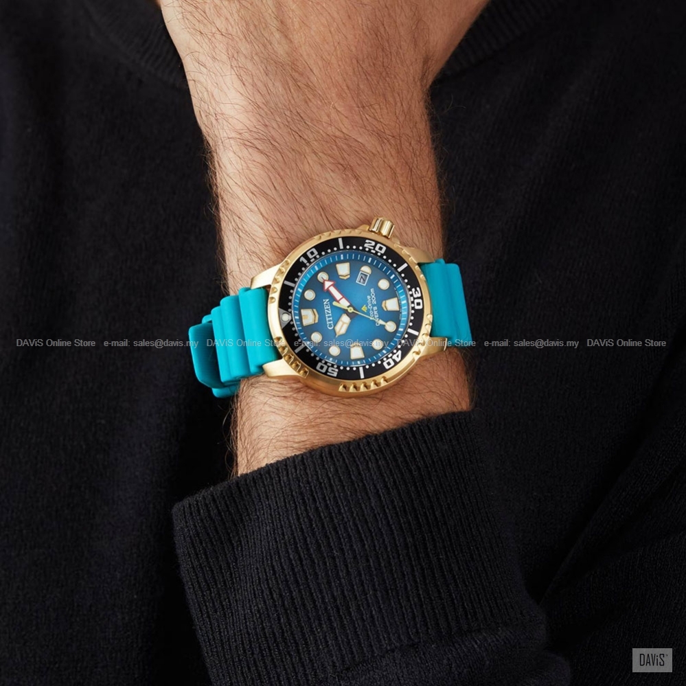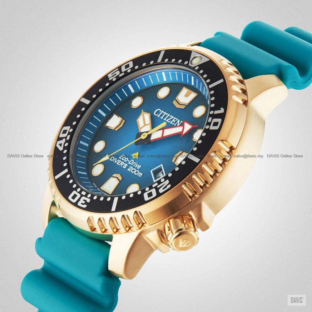 Explore the deepest depths with this Promaster Diver. This must-have ISO-compliant diving watch features a gold-tone stainless steel case, a unique blue dial with a 3-hand movement, date display and luminous hands and markers. The durable turquoise coloured water-resistant polyurethane strap completes the look. Featuring our sustainable Eco-Drive technology powered by light that never needs a battery. You’ll wear this high-performance timepiece in high style from adventures on land to the deep blue sea. Completed with a screw-down case and crown and water resistance to 200 metres. Calibre No: E168 Last Updated @ 26/2/2026 3:31:26 PM |