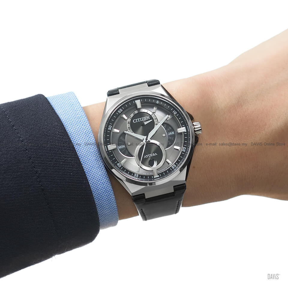 Inspired by Attesa’s enduring passion for space exploration, this sophisticated timepiece combines advanced Eco-Drive technology with a refined moonphase indicator, delivering both innovation and timeless appeal. Its sleek, minimalist design is elevated by a supple leather strap, a rich dark gradient dial, and a triple calendar layout. Silver-tone accents lend a polished finish, while 100-meter water resistance ensures lasting performance in any setting. This watch redefines modern luxury, seamlessly blending elegance, functionality, and durability. Details Movement Strap Water Resistant Case Thickness Case Size Case Glass Maximum run time from full charge (Normal Use Condition) Specification Gender Last Updated @ 26/2/2026 4:14:25 PM |