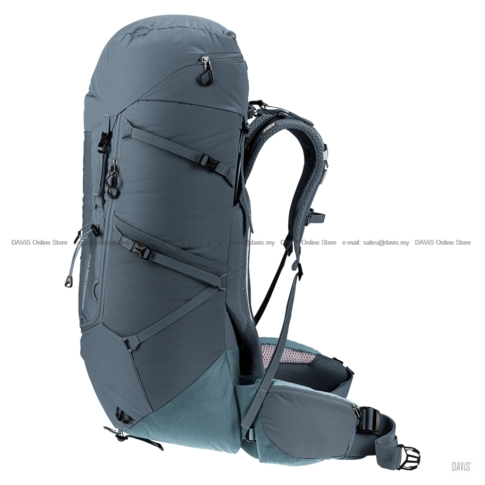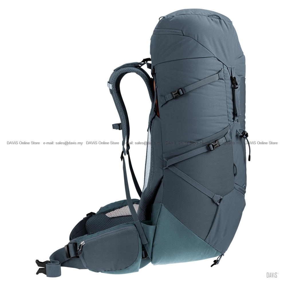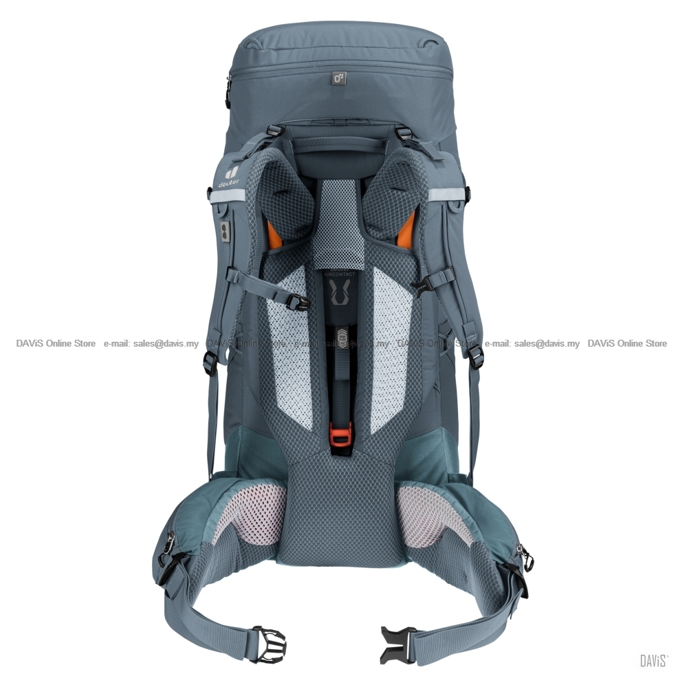 This webpage is best viewed at 1280 x 1024 Resolution Product Description: This comfortable pack is very versatile thanks to modular gear straps that can be positioned to attach a range of items depending on the undertaking or the gear you need. Its superior carry comfort is down to the deuter Aircontact back system with Air Spacer mesh and a wide ventilation channel, plus ergonomic shoulder straps and an adjustable sternum strap. The Y-shaped frame in combination with mobile hip fins that wrap around the hips and deuter’s ergonomic trapezoid-shaped lumbar pad work together to distribute and stabilize the load. Specification Your optimal companion for Features Material Made without PFAS Recycled fabric AIRCONTACT Good Ventilation The benefits Warranty: Shipping & Handling: