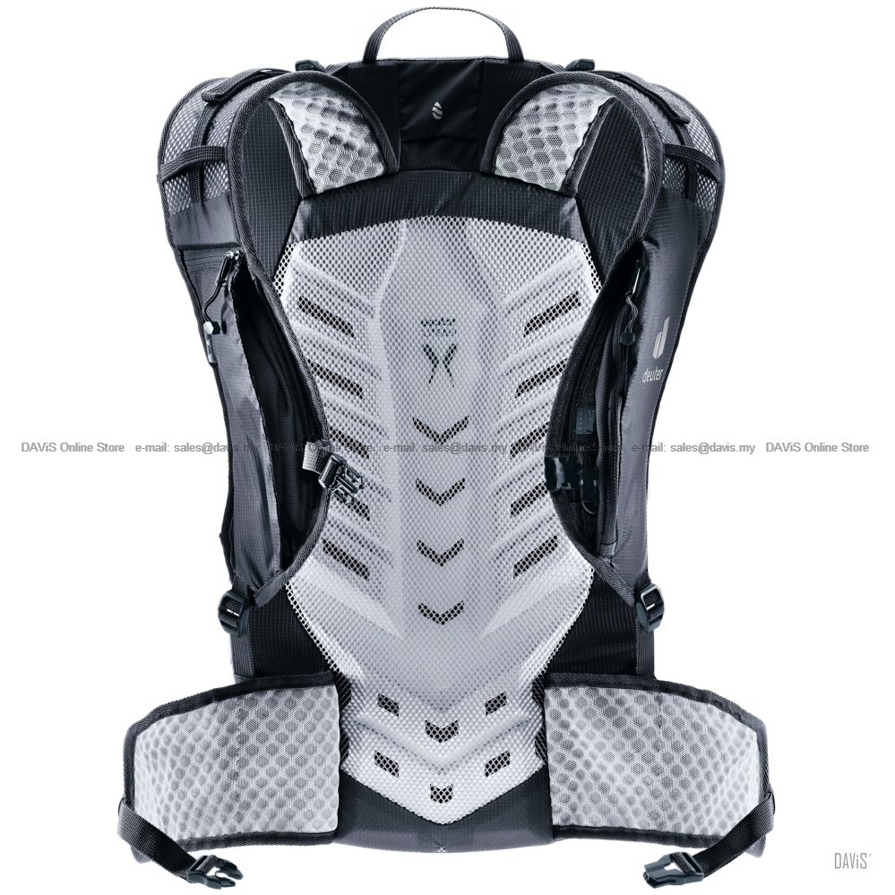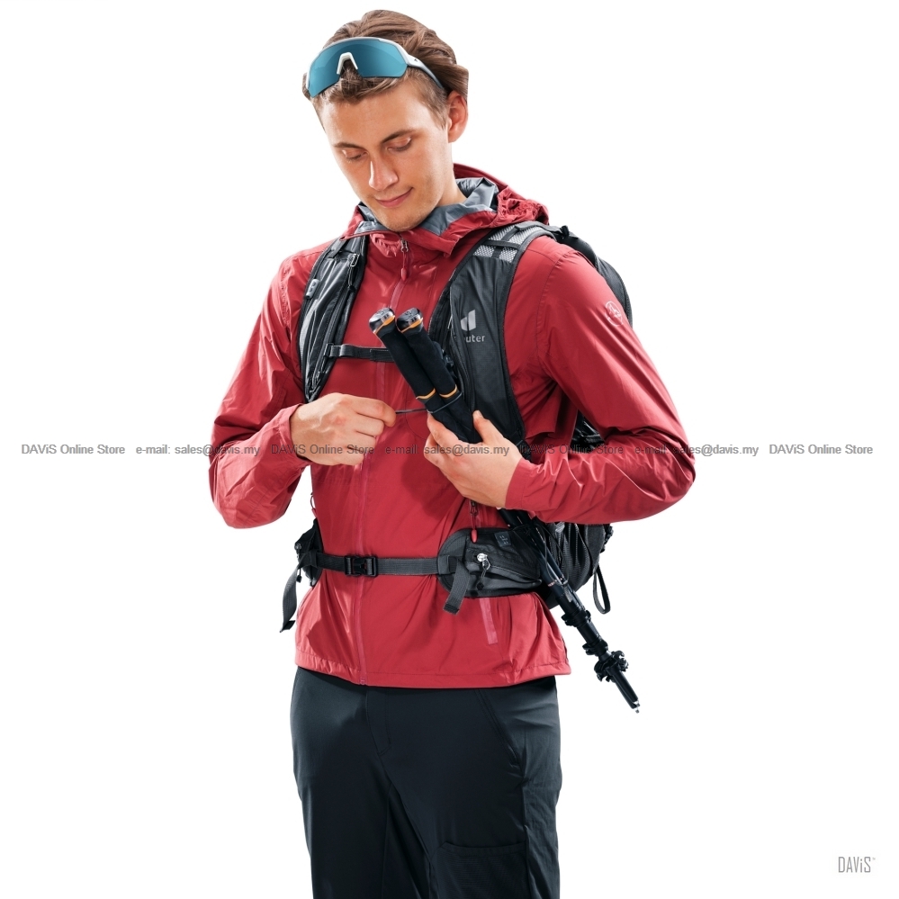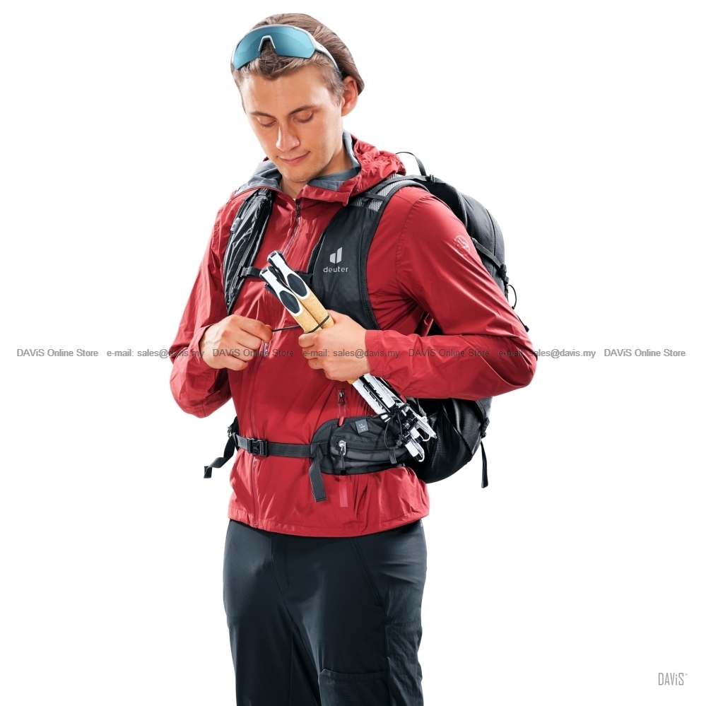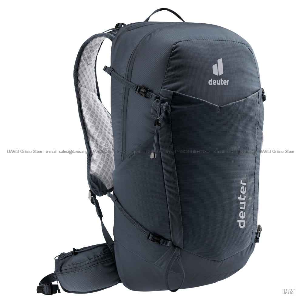 This webpage is best viewed at 1280 x 1024 Resolution Product Description: Move fast & light through the mountains – as well as comfortably – with this featherweight speed hiking backpack. Its vest-style perforated shoulder straps, supple hip fins, 2-way adjustable sternum strap and deuter LiteAir back system combine to create good ventilation and a snug, compact fit. Handy pockets on the shoulder straps and hip fins, plus quick-release pole attachments, provide fast on-the-move access without having to take off the pack. Your optimal companion for Features Specification Material LITEAIR Balanced load distribution The benefits Made without PFAS PFAS is used, among other things, as a coating for rain protection, as they have water, dirt and grease-repellent properties. Instead, deuter now uses DWR (Durable Water Repellency) impregnation, which is harmless to health and environmentally friendly. Green Button certified product ClimatePartner certified product bluesign® product The shell fabrics are made of 100% recycled yarn Warranty: Shipping & Handling: