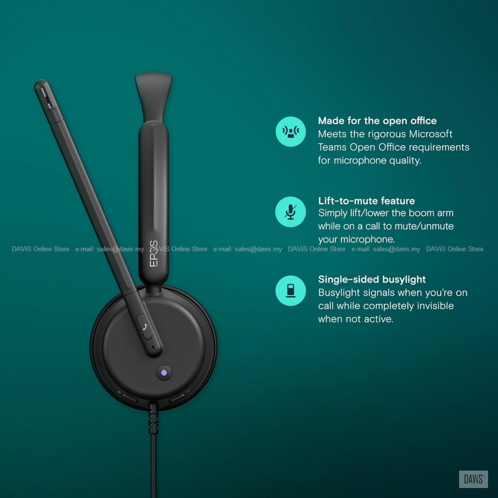 Product Description: General Information Be heard with a double-sided wired, Teams-certified headset for hybrid workers that delivers value for money. Advanced noise-filtering technology transmits your voice instead of unwanted noise, while the speakers deliver exceptional sound so that you don’t miss a word. EPOS proudly presents the IMPACT 400 The IMPACT 400 is a mid-level wired headset at an unmatched price point. It is an ultralight, non-ANC headset for office professionals and hybrid workers that delivers great voice pick-up for clear conversations. All-Day comfort and seamless productivity Helpful features like the dedicated Teams button, busylight, and an LED mute indicator make using the headset a seamless experience. ANC gently blocks out noise for daily work Share your message, not the noise Comfortable design for all-day wear Advanced performance meets exceptional value Make your workday more effortless Direct connection to Android devices Specifications Features General Data Packaging Dimensions Long Term-Reliability