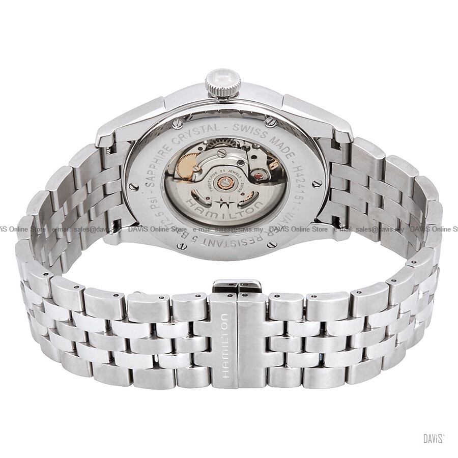 Product Description: The signature of the Spirit of Liberty is uncompromising attention to detail, building a strong bridge from history to modernity. The Hamilton H-10 movement with 80 hours of power reserve and its exclusive decoration and skeletonized rotor add a contemporary feel to the traditional precision timekeeping. Specifications Collection Movement Case size Thickness (mm) Dial color Case material Crystal Lug width Power reserve Water Resistance Anti Reflection Open Case Back Strap reference Strap type Buckle type Movement Hamilton Two-Year Warranty LIMITED TWO-YEARS WARRANTY Your HAMILTON® watch is warranted by Hamilton International Ltd. for a period of twenty-four (24) months from the date of purchase under the terms and conditions of this warranty. The international HAMILTON warranty covers material and manufacturing defects existing at the time of delivery of the purchased HAMILTON watch. The warranty only comes into force if the warranty certificate is dated, fully and correctly completed and stamped by an official HAMILTON dealer. During the warranty period and by presenting the valid warranty certificate, you will have the right to have any defect repaired free of charge. In the event that repairs are improper to restore the normal conditions of use of your HAMILTON watch, Hamilton International Ltd. guarantees its replacement by a HAMILTON watch of identical or similar characteristics. The warranty for the replacement watch ends twenty-four (24) months after the date of purchase of the replaced watch.