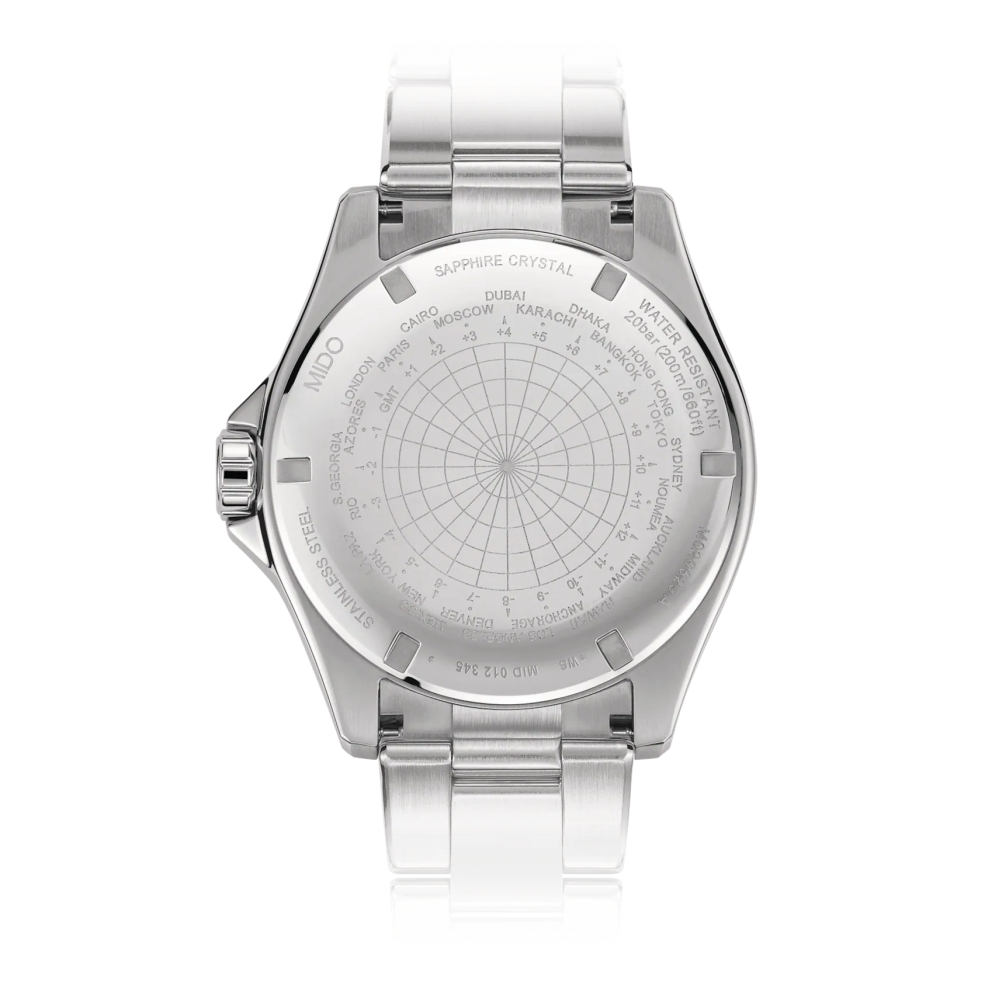 This webpage is best viewed at 1280 x 1024 Resolution About MIDO : Founded in Switzerland in 1918 by George Schaeren, Mido is today based in the town of Le Locle, in the heart of the Swiss Jura mountains. The name Mido comes from the Spanish "Yo mido", I measure. Timelessness is the mark of true design. Mido′s philosophy is to combine timeless design with functionality rather than following fashion trends. True design outlives all fashion trends. The objective is to create timepieces made of high quality materials, endowed with precise movements and offering outstanding water-resistance in order to last a long time. Timelessness is the hallmark of its image, which aims to be clean-cut and refined. Mido’s philosophy is to combine timeless design with functionality rather than following fashion; to outlive all passing trends and to make Mido watches a product to be passed on to future generations. The objective is to create timepieces in high-quality materials, endowed with high-precision movements and offering exceptional water-resistance, in the spirit of sustainable development. As a specialist in mechanical watches, Mido offers a variety of models with designs ranging from retro to contemporary, and from classic to innovative. They all meet the brand’s five strategic criteria: the Swiss-made label; a distinctive identity; a high-precision, high-quality mechanical movement; superior water-resistance, and excellent value for money. The watches are sold through 2000 authorized retailers in 50 countries around the world. Ocean Star
