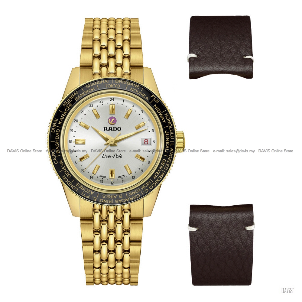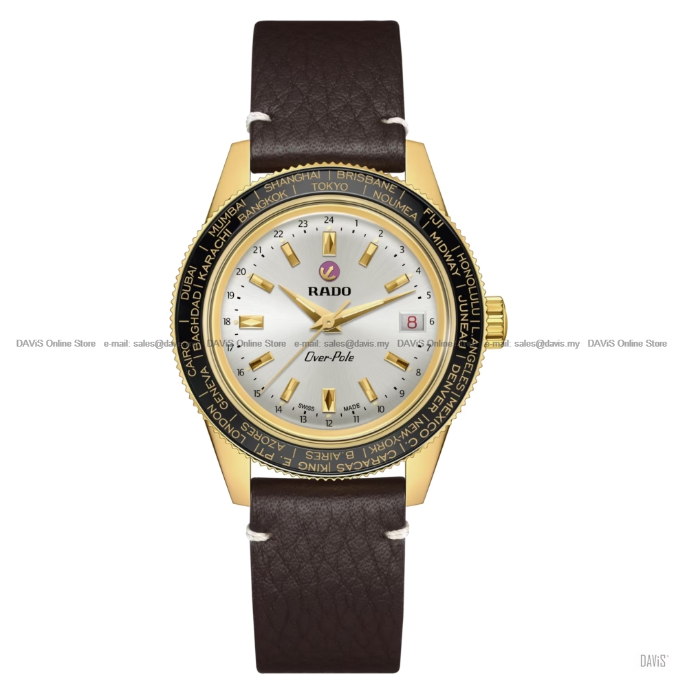 Product Description: The Captain Cook Over-Pole is back! A stunning new Limited Edition reprises the key features of previous versions, in particular the R862 Worldtimer manual-winding movement. Robust, precise, and guaranteed to perform thanks to rigorous in-house testing in 5 separate positions, it is mounted within a bold 39 mm case. Côtes-de-Genève surface finishing, blued screws and gold-coloured details are easily admired through the sapphire crystal on the back. As sleek as it handsome, the new version comes with a stylish yellow gold PVD stainless steel bracelet with three-fold clasp. The bracelet is easily exchanged with a rugged brown leather strap thanks to Rado’s Easy-Clip system. In addition, the new Over-Pole comes with a practical leather pouch to store the watch and extra strap, and is accompanied by an official Limited Edition Certificate. CASE Thickness Case material Case color Bezel Crown Caseback Weight DIAL Dial indicator Indexes Hands MOVEMENT Caliber Power reserve Accuracy Balance wheel BRACELET Bracelet color Buckle Warranty: Last Updated @ 12/2/2026 4:35:17 PM |