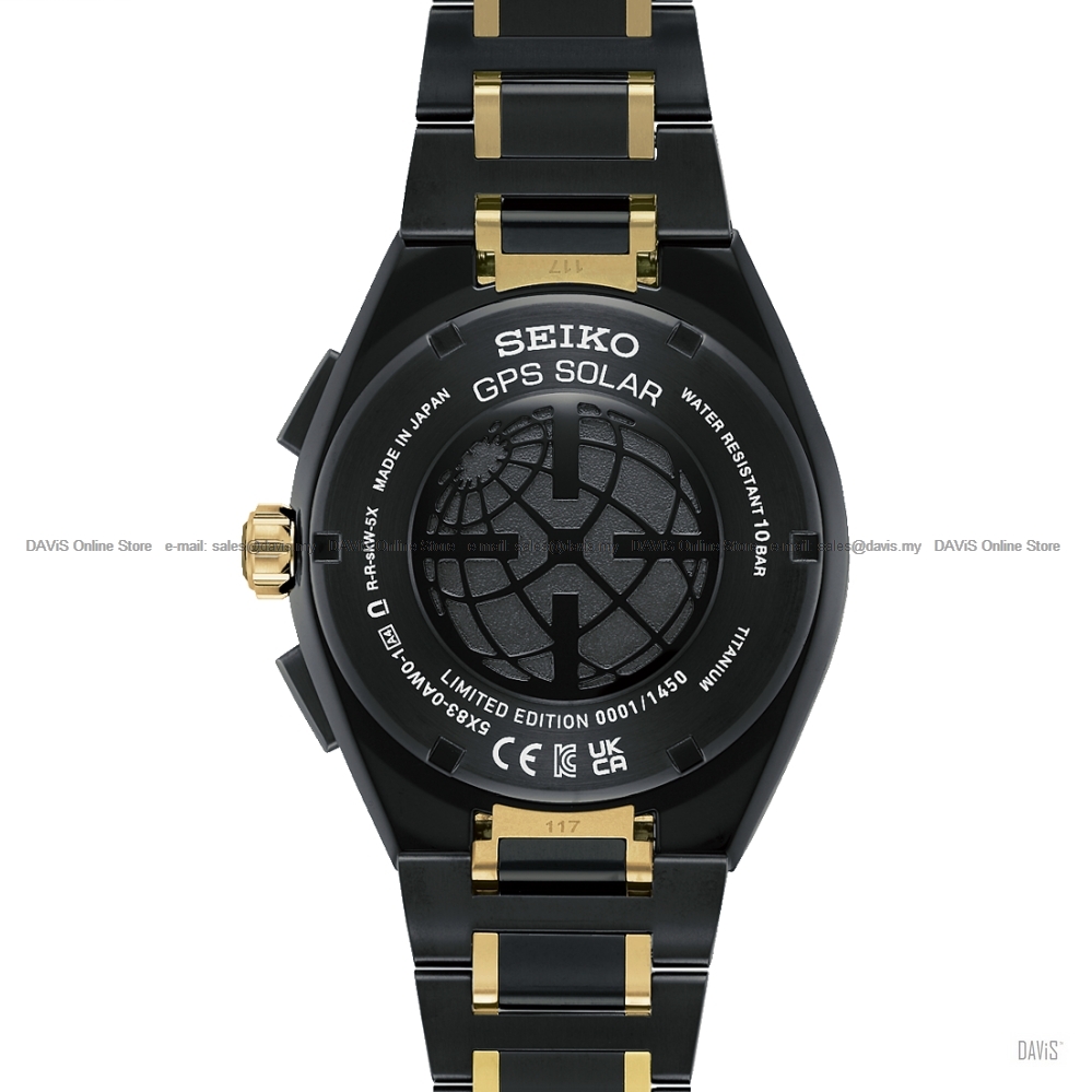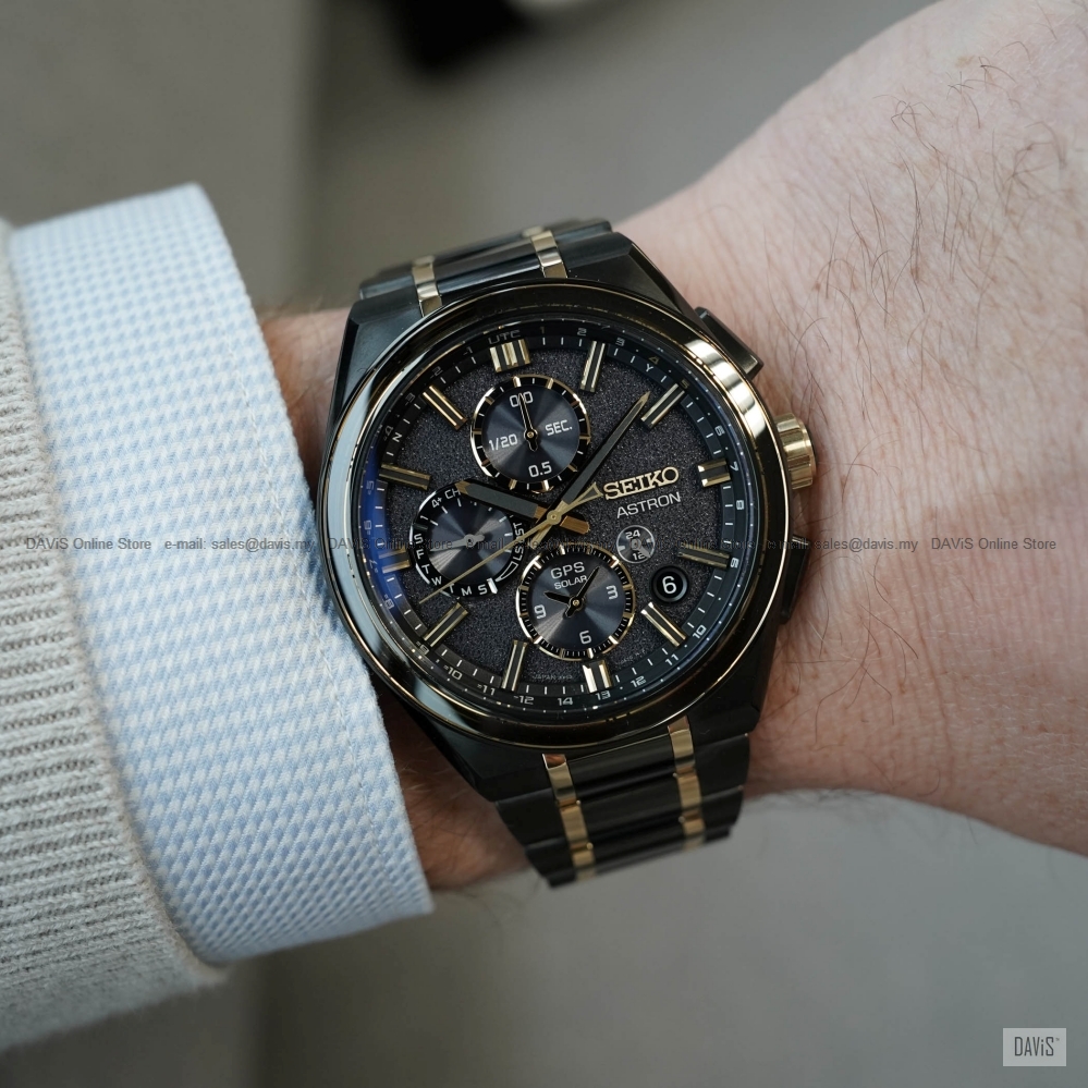 Seiko 145th Anniversary Limited Edition of 1,450 pieces In celebration of Seiko’s 145th anniversary, a special limited-edition model tracing Seiko’s legacy is now available. This new GPS Solar Dual-Time Chronograph celebrates Astron's spirit of innovation. Symbolizing success and prosperity, gold-colored accents grace every part of the watch, from the dial and bracelet to the case. The bezel features a gold-colored sapphire crystal insert that adds depth and dimension. Even the gold-colored markings at 1, 4, and 5 on the UTC scale offer a subtle tribute to the 145th anniversary. Specifications Movement Type Precision Power reserve Jewels Functions Case/Band Case Size Crystal Crystal Coating Clasp Bracelet Length Distance between lugs Other Details Magnetic Resistance Features * In an actual product, the case back direction might be different from the photograph. * All specifications and prices are subject to change without prior notice. Last Updated @ 4/3/2026 3:26:45 PM |