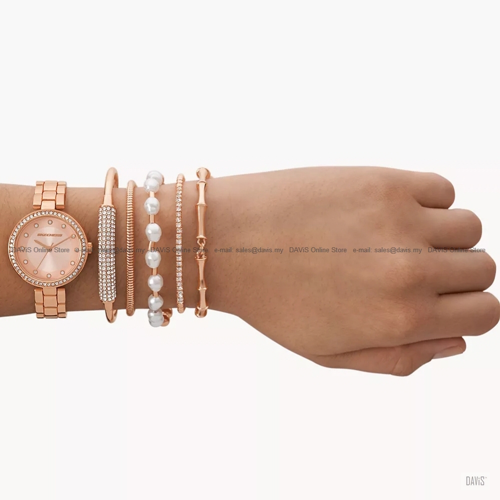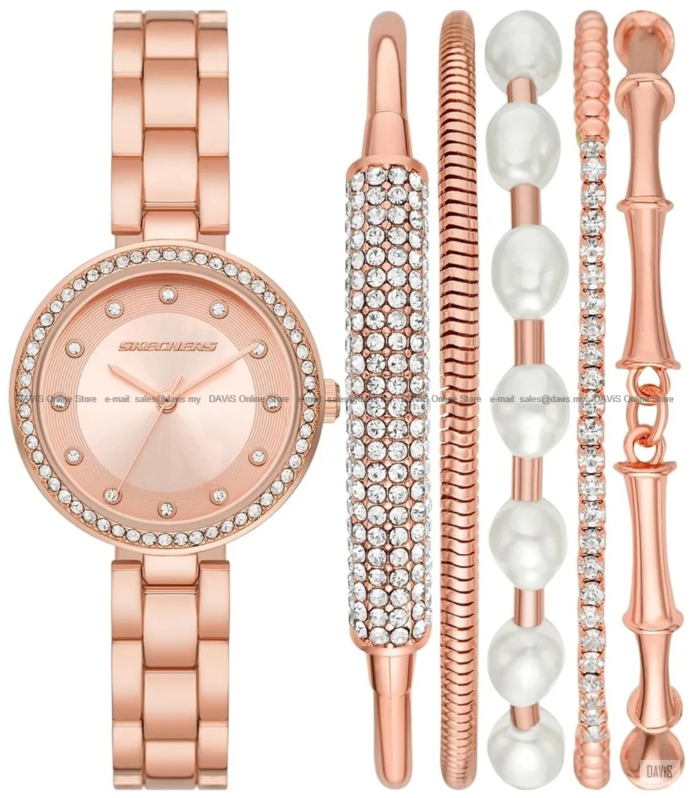 This webpage is best viewed at 1280 x 1024 Resolution Description: Sparkle and shine, always. This glitzy set includes a rose gold-tone metal watch with a sunray dial, plus five coordinating bracelets. The shimmering rose gold metal captures the light beautifully. An instant style upgrade for every outfit. The ultimate accessory stack is here. - Gender: Female Warranty: 2 years international warranty. *Within 2 years if your watch facing any issue which cover within SKECHERS watch warranty terms, you can send back to us for warranty claim or service* Shipping & Handling: Free Shipping in Malaysia by PosLaju. We ship internationally by urgent courier. Please contact us for shipping rate. *Add in +1.5% item value to insured your parcel for lost or damage during transit. Highly recommended but not compulsory* All shipping times on this page are estimates. Delivery times may vary depending on product availability. Payment Method: https://www.lelong.com.my/store/DAVIS/payment Seller Notes: Stock quantity appears in the sales posting may not reflect the real in-stock status. We do not reserved the stock unless you have clicked "BuyNow" and make your payment on time. All SKECHERS watches selling by us is genuine watch from Malaysia authorised dealer. All specifications and prices are subject to change without prior notice. Last Updated @ 30/10/2025 2:29:52 PM |