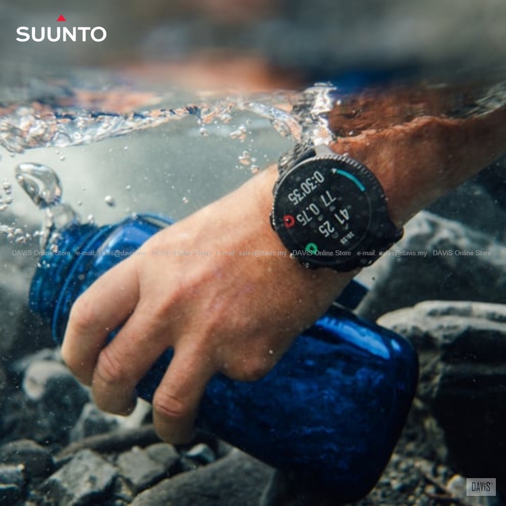 Designed for the adventure Built to endure Battery for your longest missions Training, continuous tracking Up to 250 hours Daily use, no training included Up to 30 days A mode for every adventure Navigate off-grid, offline A smart way to prepare and progress A watch that evolves with you SPECIFICATIONS What's in the box? TECHNICAL SPECIFICATIONS PHYSICAL SPECIFICATIONS BATTERY LIFE COMPASS CONNECTIVITY 24/7 SLEEP TRACKING STRESS AND RECOVERY OUTDOOR FUNCTIONS ALTIMETER WEATHER TRAINING FUNCTIONS HEART RATE SPEED AND DISTANCE TRAINING RECOVERY TRAINING LOAD SHARE AND RELIVE SPORT EXPERTISE CYCLING RUNNING MULTISPORTS SPORT MODES DIVING FUNCTIONS Warranty : 2 years manufacturer warranty (International) for wristop computer, 1 year warranty on consumable parts. *Warranty Details* Price : Prices quoted are final. The lowest price we can offer. Shipping : Free Shipping in Malaysia by PosLaju. International shipping by urgent courier. Please contact us for the shipping rate. Insurance : +1.5% for the item value against parcel lost, parcel damage or any unforeseen circumstances. *Optional* Guaranteed : Our Suunto product is 100% genuine product from Suunto Authorised Distributor. New in box. Lowest price in Malaysia market. Cash on Collection : Not Available. Please use our free shipping service. Product viewing : Sorry, we are running internet sales only. We do not operate brick and mortar business. Side Notes : Suunto Oy advised us to list up minimum informations only in our sales posting, for more informations please visit https://www.suunto.com
